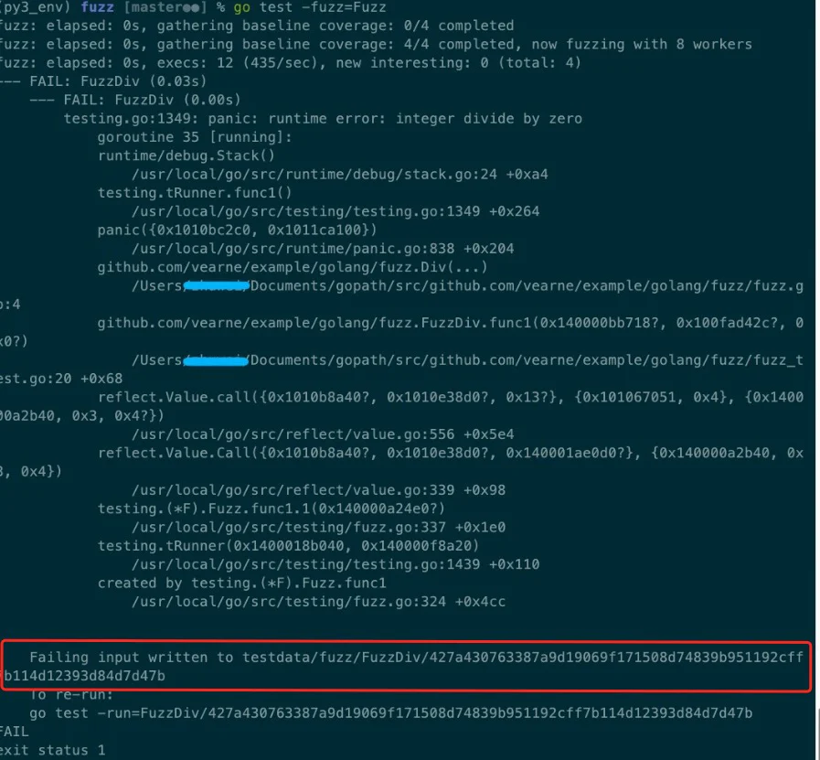 (py3_env) fuzz [master●●●] % cat testdata/fuzz/FuzzDiv/378303d09d9499e4e6c708a92079f30db6f554529fd9eb86ac9a9639481fb23d