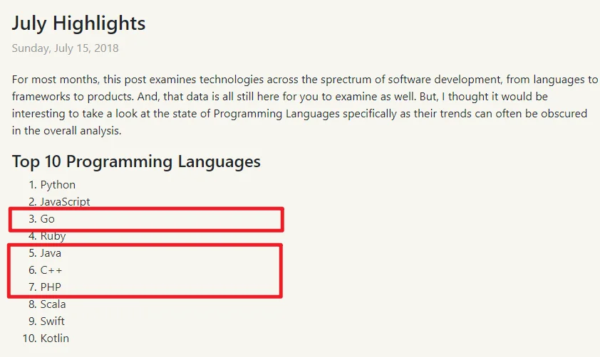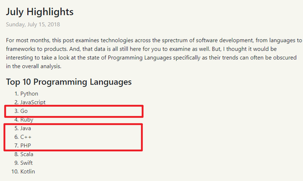 - 性能优势: Go 极其地快。其性能与 C 或 C++相似。在我们的使用中,Go 一般比 Python 要快 30 倍左右
