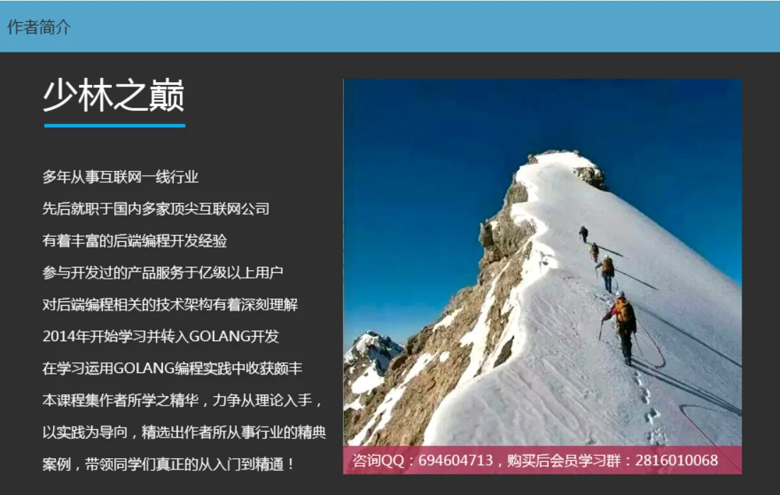 本课程以学习Golang语言开发互联网产品为目标,从基础理论知识入手,详实地讲解Golang语言的开发方法与技巧,并通过大量的线上训练,带领同学们全面掌握服务端主流互联网产品的开发技术栈,快速达到大公司工作两年的技术水平。