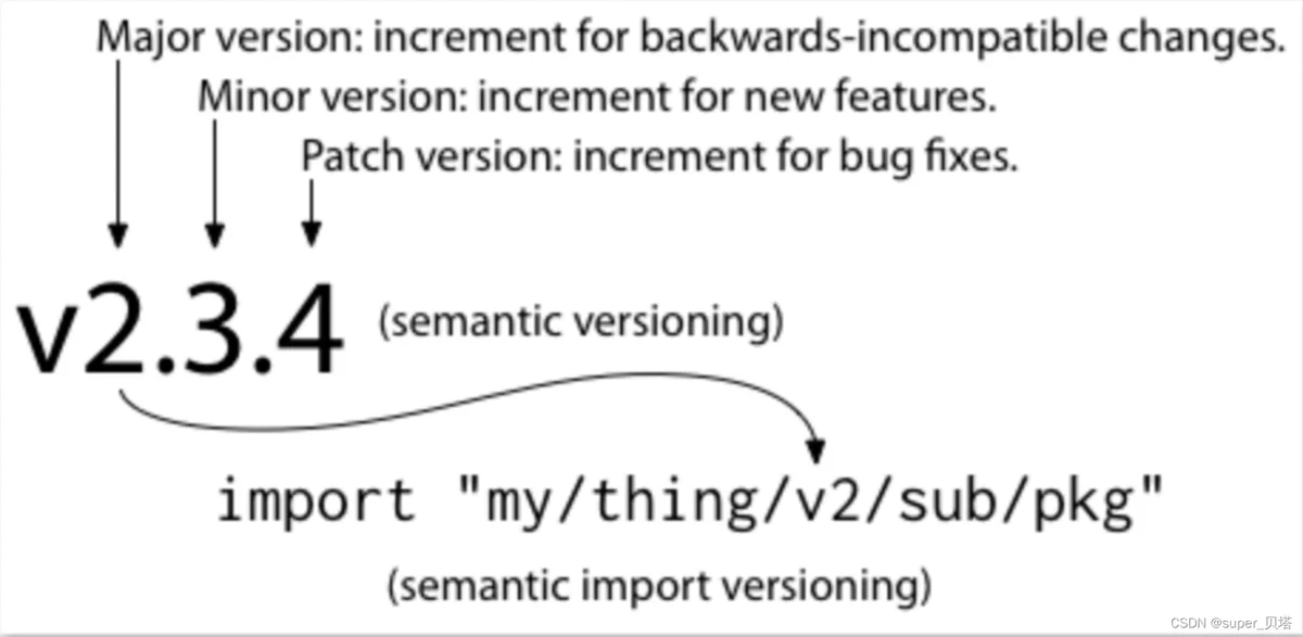 这里,只要模块的主版本号(MAJOR)不变,次版本号(MINOR)以及修订号(PATCH)的变更都不会引起破坏性的变更(breaking change)。