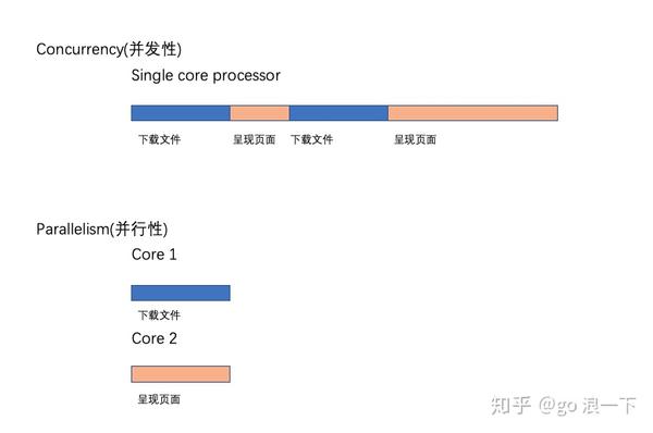 并发性和并行性——一种技术上的观点。 假设我们正在编写一个web浏览器。web浏览器有各种组件。其中两个是web页面呈现区域和下载文件从internet下载的下载器。假设我们以这样的方式构建了浏览器的代码,这样每个组件都可以独立地执行。当这个浏览器运行在单个核处理器中时,处理器将在浏览器的两个组件之间进行上下文切换。它可能会下载一个文件一段时间,然后它可能会切换到呈现用户请求的网页的html。这就是所谓的并发性。并发进程从不同的时间点开始,它们的执行周期重叠。在这种情况下,下载和呈现从不同的时间点开始,它们的执行重叠。