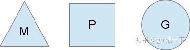 我们分别用三角形,矩形和圆形表示Machine Processor和Goroutine。