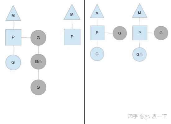 其图中的G,P和M都是Go语言运行时系统(其中包括内存分配器,并发调度器,垃圾收集器等组件,可以想象为Java中的JVM)抽象出来概念和数据结构对象: