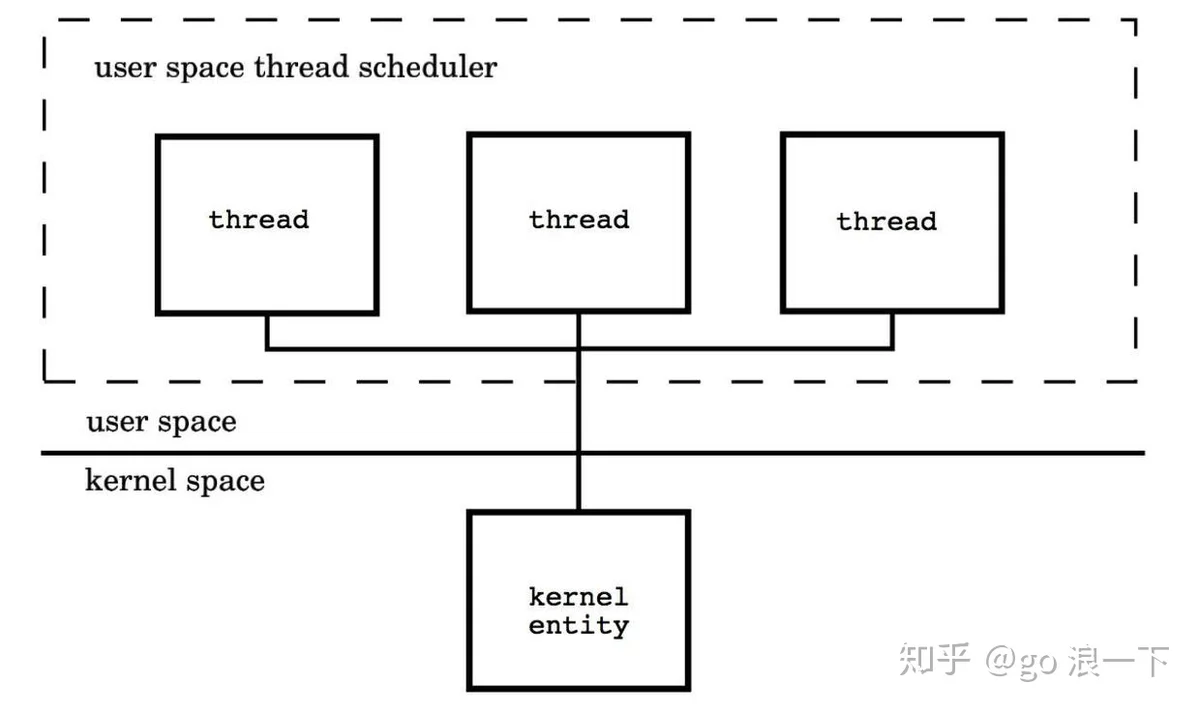 Go并发编程模型在底层是由操作系统所提供的线程库支撑的,因此还是得从线程实现模型说起。