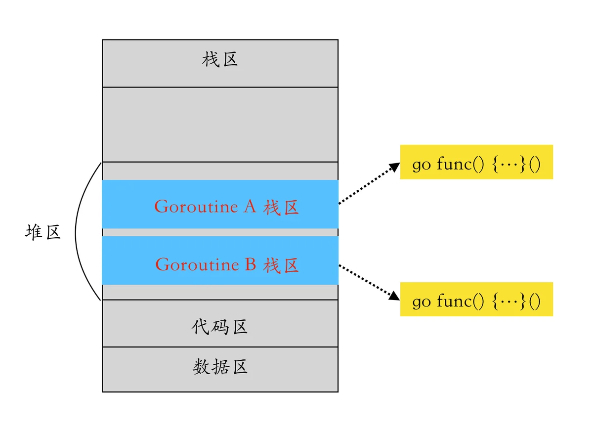 协程的本质其实就是可以被暂停以及可以被恢复运行的函数,创建一个 goroutine 时会在进程的堆区中分配一段空间,这段空间是用来保存协程栈区的,当需要恢复协程的运行时再从堆区中出来复制出来恢复函数运行时状态。