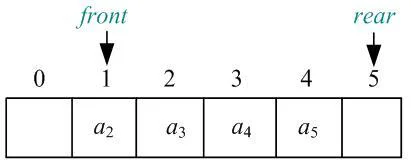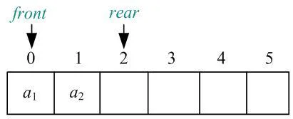 (3) 元素a2进队,放入尾指针Q.rear(整型下标)的位置,Q.rear后移一位,如图所示:
