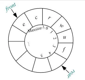 队满: (Q.rear+1) %Maxsize=Q.front; // Q.rear向后移一位正好是Q.front