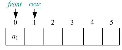 (2) 元素a1进队,放入尾指针Q.rear(整型下标)的位置,Q.rear后移一位,如图所示: