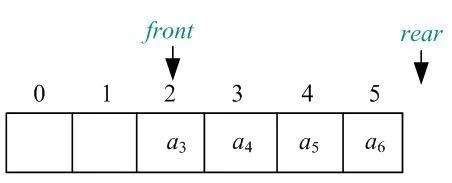 (7) 元素a6进队,放入尾指针rear(整型下标)的位置,rear后移一位,如图所示: