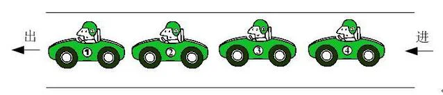 小汽车是线性排列,而且只能从一端进,另一端出,这就是"队列",队列也是一种线性表,只不过它是操作受限的线性表,只能在两端操作,先进先出(First In First Out,FIFO)。