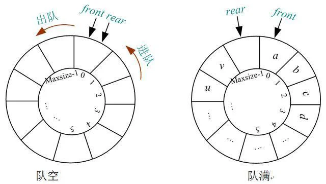 队空:Q.front=Q.rear; // Q.rear和Q.front指向同一个位置