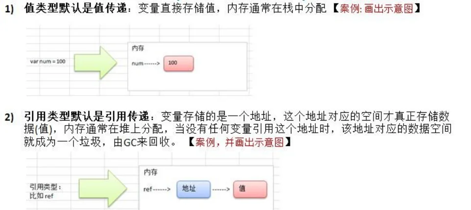 们在讲解函数注意事项和使用细节时,已经讲过值类型和引用类型了,这里我们再系统总结一 下,因为这是重难点,值类型参数默认就是值传递,而引用类型参数默认就是引用传递。