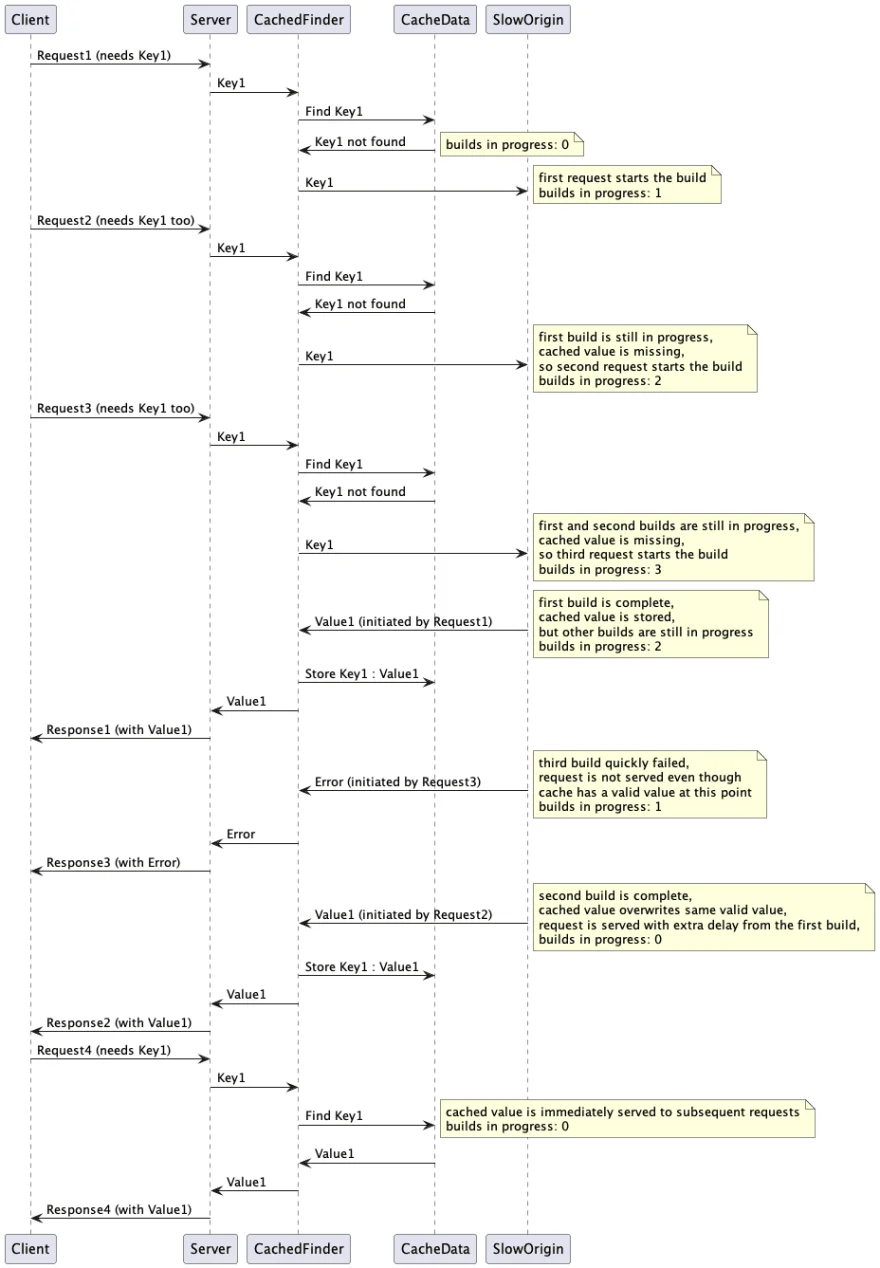 naiveadvanced一种解决方案是阻塞并行构建,这样每次只能进行一个构建。但如果有大量并发调用者请求各种键,则可能会导致严重的锁竞争。