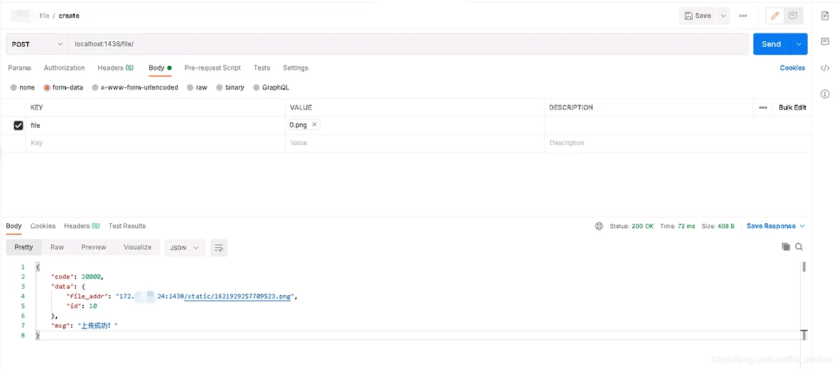 "file_addr":fileAddress,"id":fileId}, "上传成功!")
