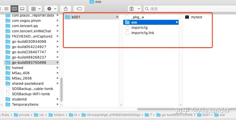 我们进入:/var/folders/kt/nlhsnpgn6lgd_q16f8j83sbh0000gn/T/go-build593750496目录,可以看到如下目录结构:
