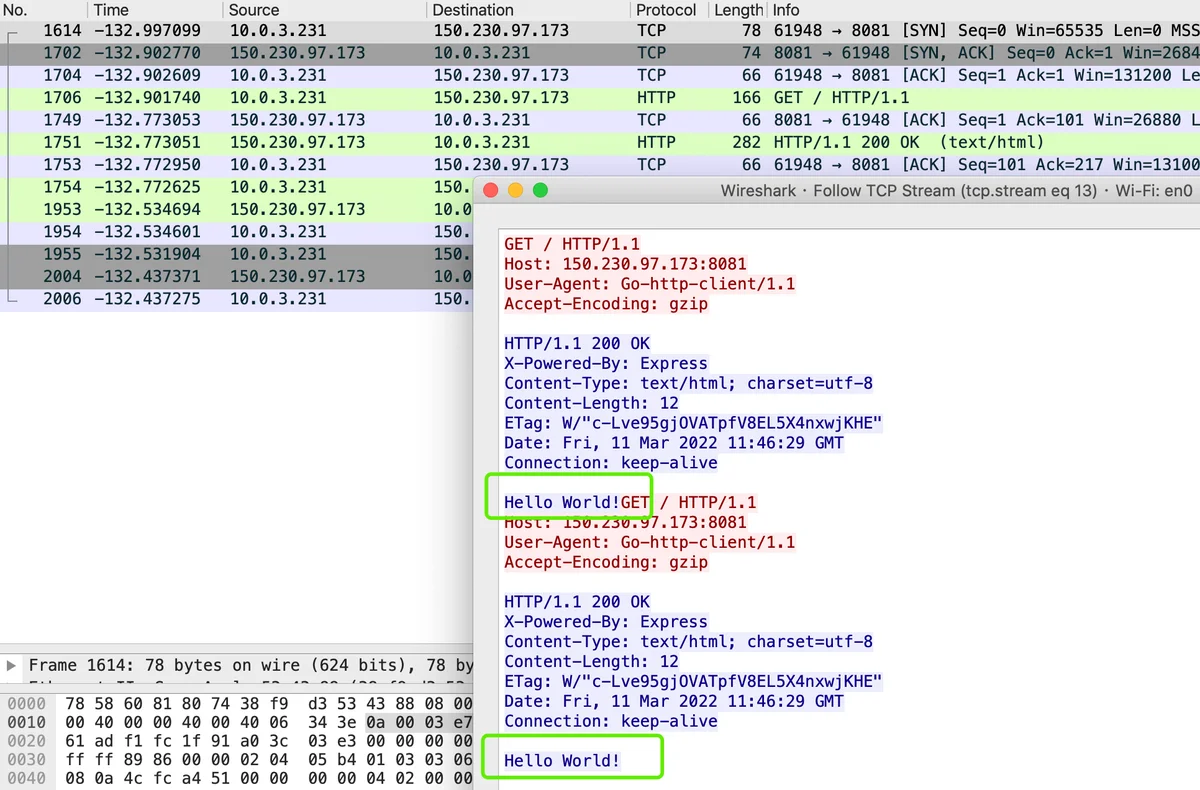 在其中一个 TCP 连接上 “右键 - Follow - TCP Stream” 可以更为直观的查看到这个 TCP 连接包含两个 HTTP 请求。