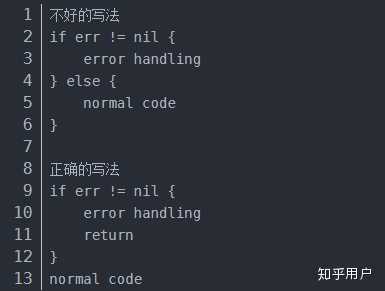 4、错误处理的原则是不能忽略任何error,不要使用"_"丢弃,必须全部处理。接收到错误,要么返回error给上层调用,要么使用log打印对应的error和warn信息 (强制)
