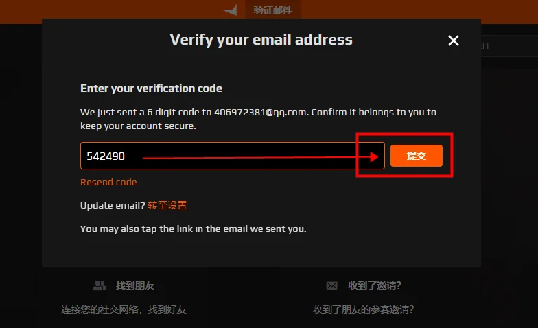 之前注册填写的邮箱内会收到一个验证码,回到验证界面填写进去。