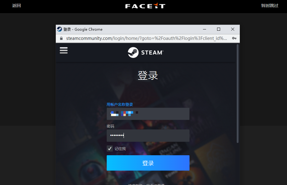 4、使用STEAM账户登录到FACEIT,点击登录。