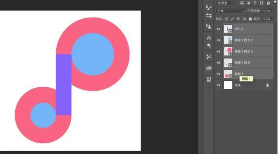 2.创建484*484px、216*216px、630*630px、362*362px四个圆形和134*520px的矩形,并按照一下规则进行排放