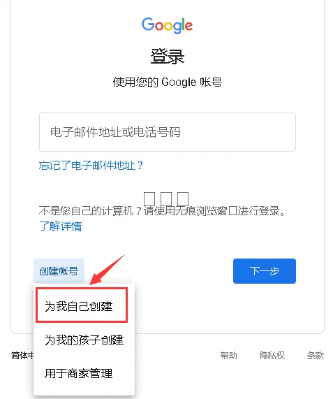 1、找到谷歌账号注册入口