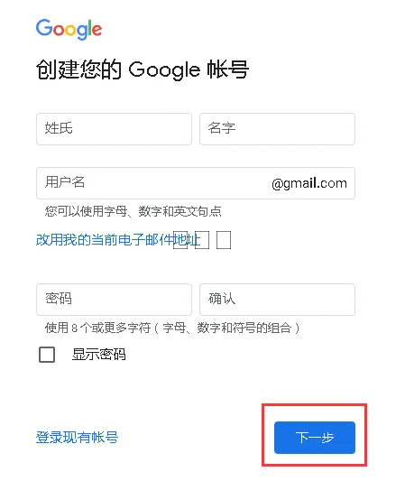 3、填写谷歌账号申请资料