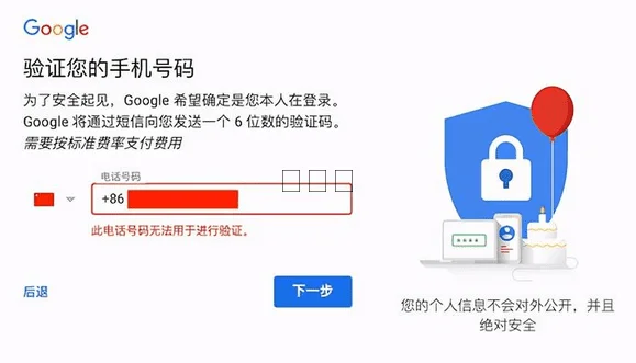5、遇到“此电话号码无法用于进行验证”该怎么办