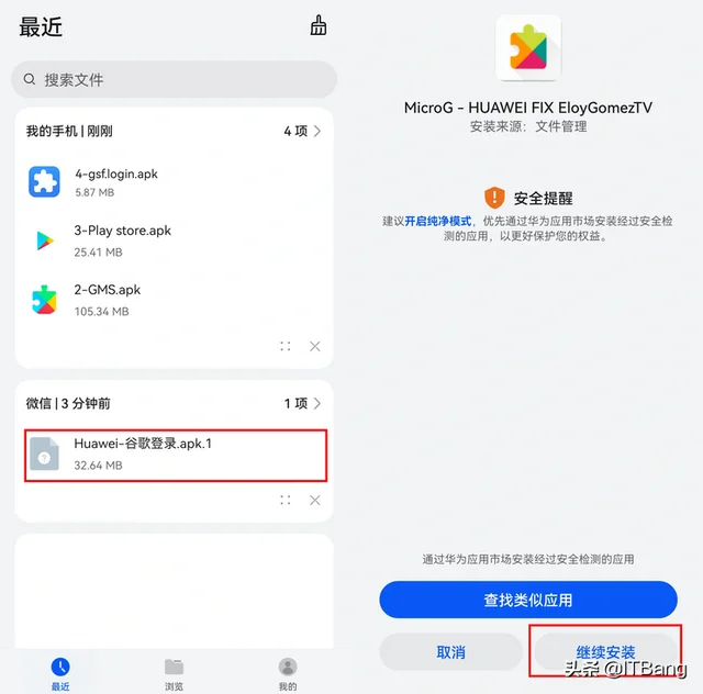 3.把base.apk安装到手机上(手机名字叫华为助手)。