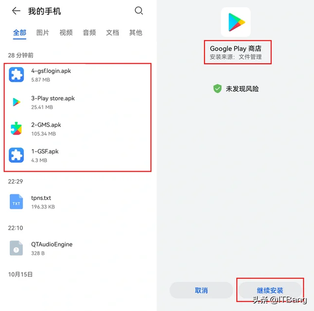 5.查看手机文件进行安装,安装顺序(3-Plty store,4-gsf.login,1-GSF)安装顺序一定不能错。