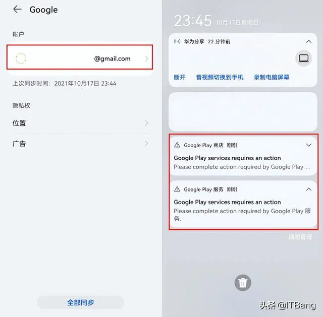 到此电脑操作步骤已完成,剩下的都在手机上操作。第三步:需要准备一个稳定谷歌账号,账号如果不稳定后期异常需要重装,用于登录。1.打开(2.备份)把里面的backup.rar复制到手机上,然后解压到 我的手机/Huawei 这个位置。
