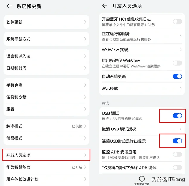 5.点击系统和更新-开发人员选项,打开USB调试功能。