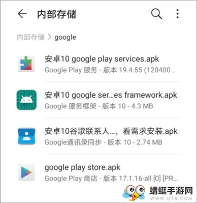 第一步、把“安卓10谷歌服务安装包.zip”解压后的APP安装文件拷贝到手机上面: