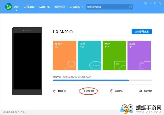 1、在Hisuite界面点击“数据恢复”,如下图所示: