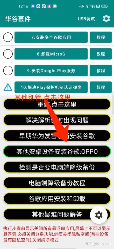 测试机型是Find X2 Pro,华谷套件主界面点击:其他国产设备安装谷歌,只需要2个简单的步骤.第1步骤:修复一些问题和Bug,第2步骤安装修复版本的Play商店