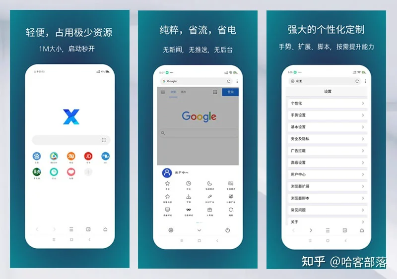 2、X浏览器这款X浏览器推荐了很多次了,虽然它仅支持安卓手机。但是它的内存真的很小,才1M 大小,极简设计交互,只占用极少的资源,闪电般的速度。无新闻,无推送,无后台进程,节能省电。它有一个非常棒的功能,支持集成第三方下载器,播放器,内建支持油猴脚。唯一的缺点是,云同步不太友好。