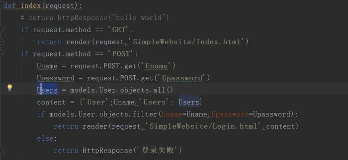 2.在views.py的index方法中(就是处理登录逻辑的方法)