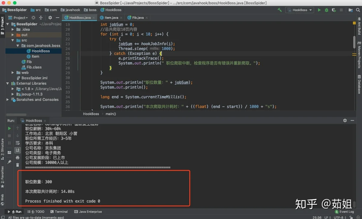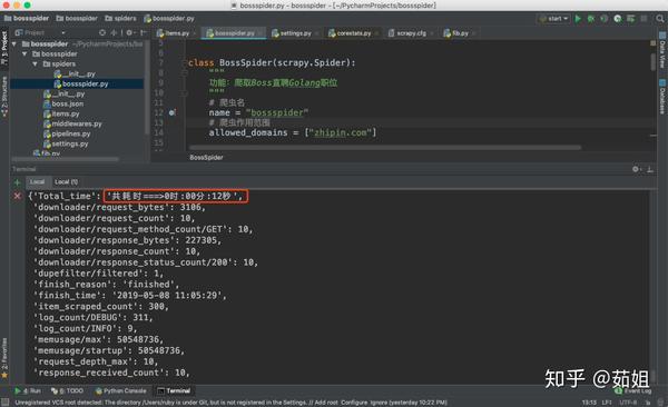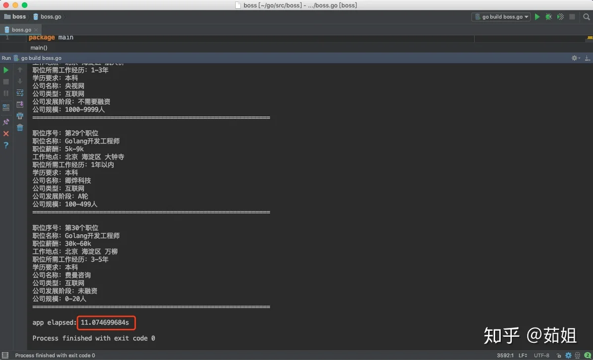 我们可以看到一共花费了11s的时间,但是我们为了防止boss反爬,在程序中设置了,每隔1s中再爬取下个页面,所以减掉9s,真正的爬数据的时间也就2s: