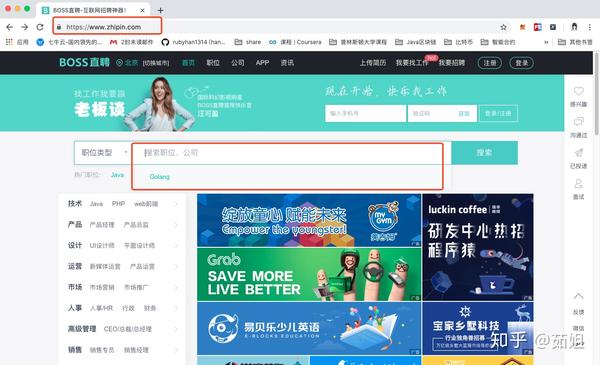然后我们在职位类型中输入Go或者Golang关键字: