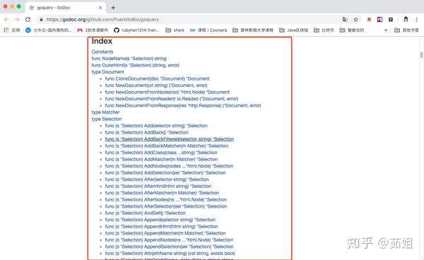 其次:就是去看看goquery的API,先了解一下常用的方法: