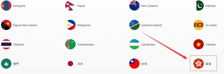 2、接着在里面找到【香港地区】,并且点击,如下图所示。