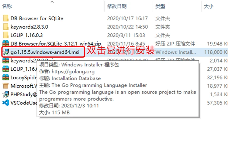 下载完成后,在你的下载目录下,找到你下载的golang安装包。
