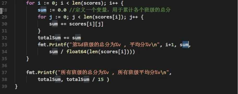 Ø 要求如下: 定义二维数组,用于保存三个班,每个班五名同学成绩, 并求出每个班级平均分、以及所有班级平均分