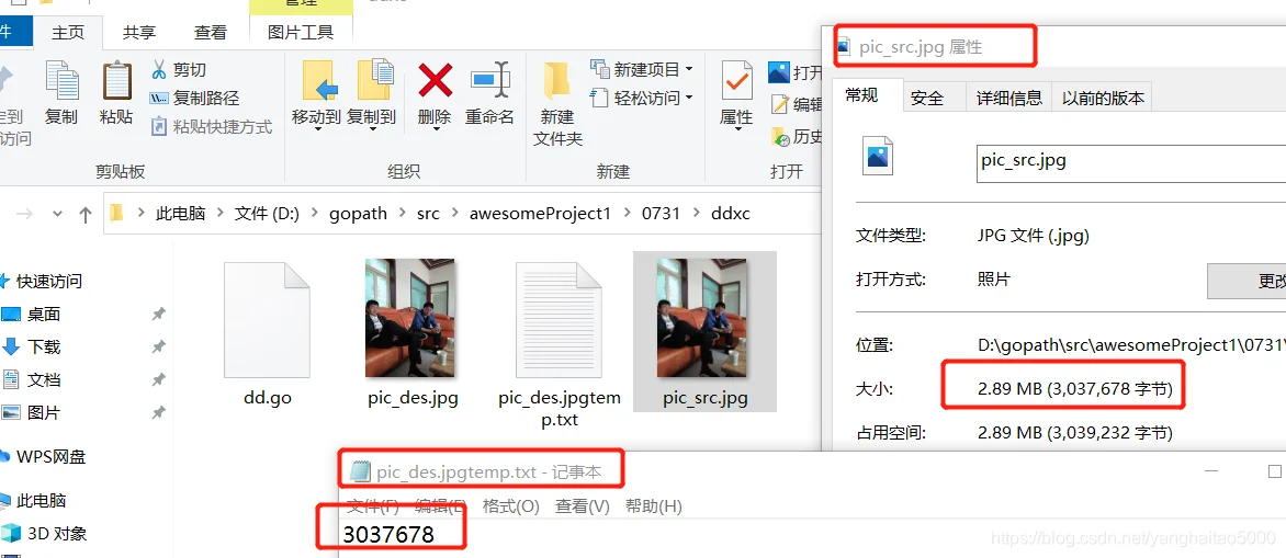 4、检验下: 当文件复制完成后,pic_des.jpgtemp.txt文件里保存的字节数刚好等于传输文件大小,说明文件完整复制。