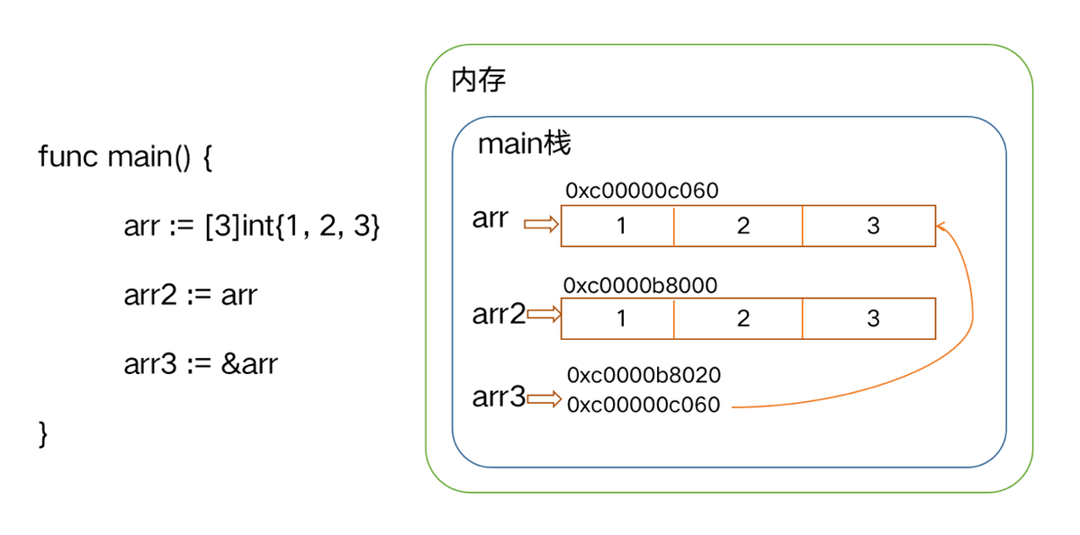 而arr3获得的是arr地址的副本,即引用赋值的方式复制的是地址,这个地址指向的还是原来的数据。