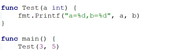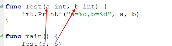 首先我们定义了一个Test()函数,该函数有两个参数,a,和b .并且这两个参数的类型都是整型的(这两个参数我们称之为形参),在调用Test()函数时,我们将3传递给参数a,将5传递给参数b(在调用时输入的3和5这个参数我们称之为实参)。我们把这个过程称为参数的传递,并且在Test()函数中输出两个变量的值。