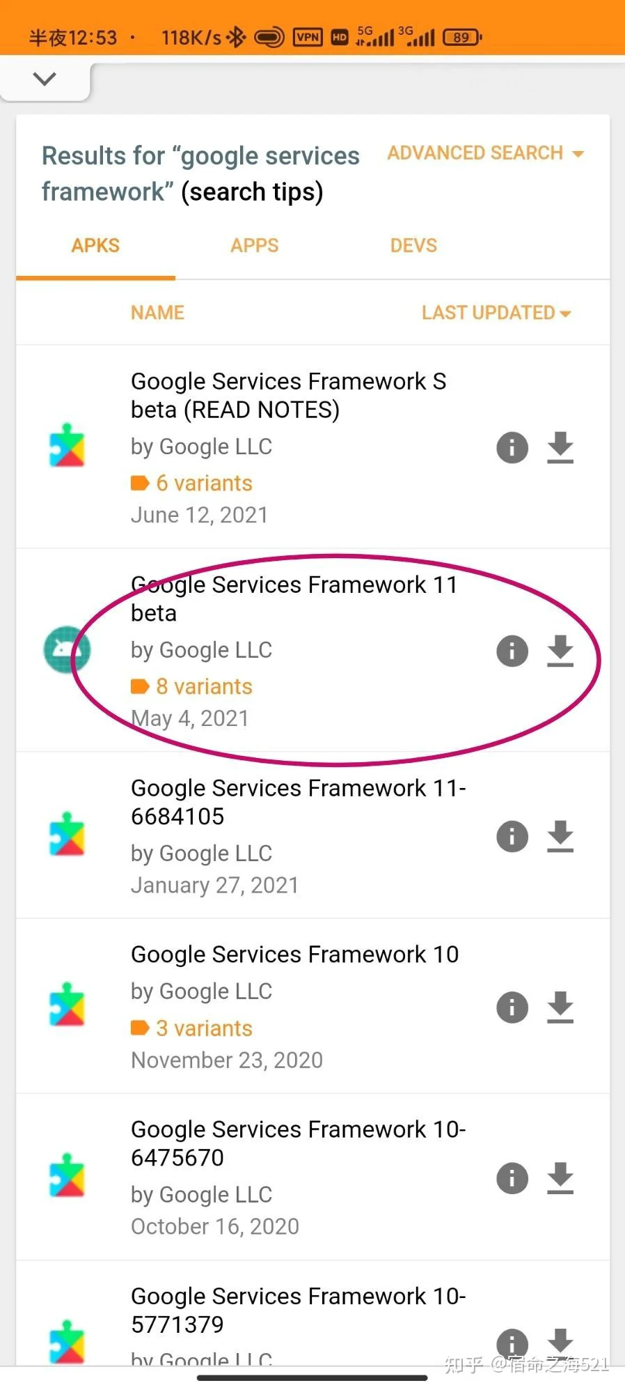 另外谷歌服务框架(google services framework)注意区分12测试版本/11测试版本;