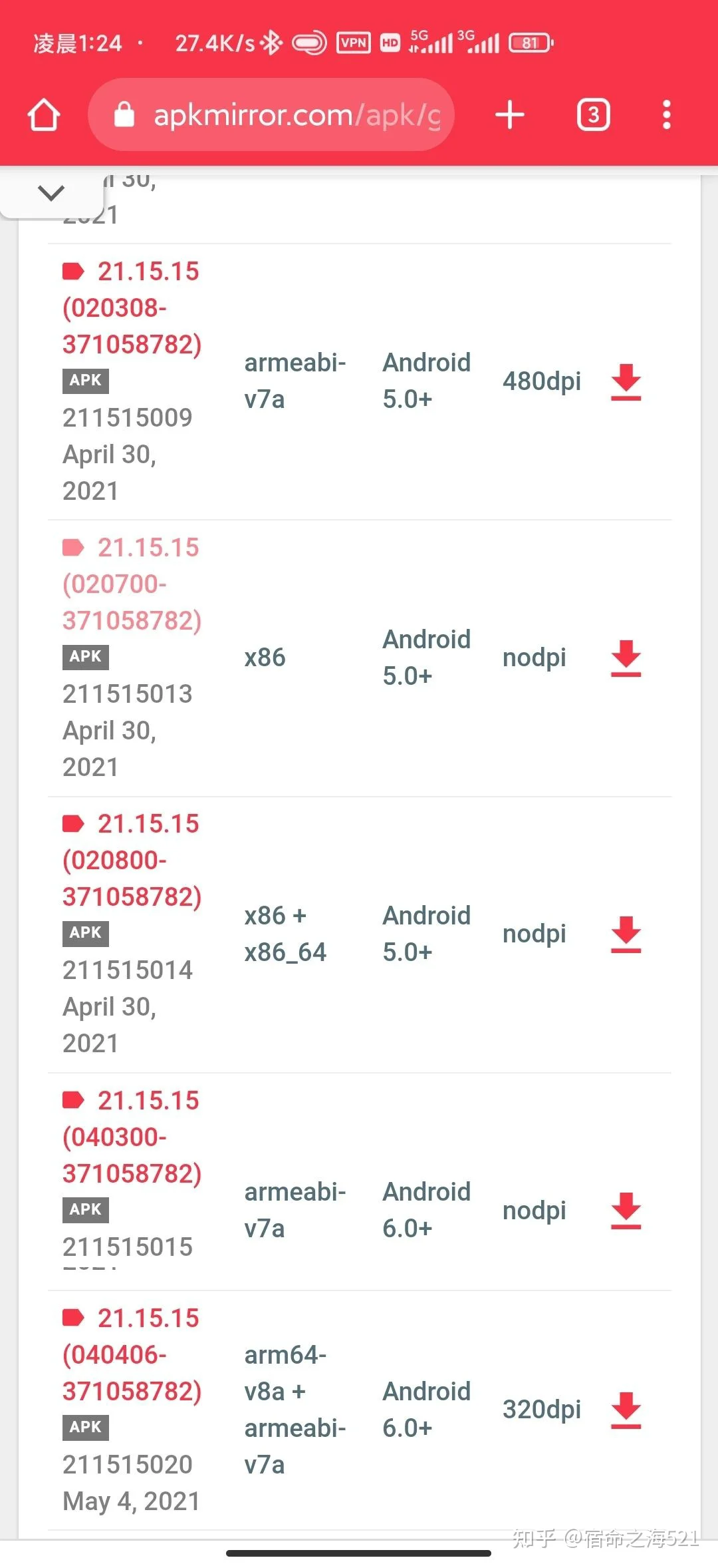 此处我们可以用选择arm64-v8a+armeabi-v7a无dpi(也即自适应dpi)版本。