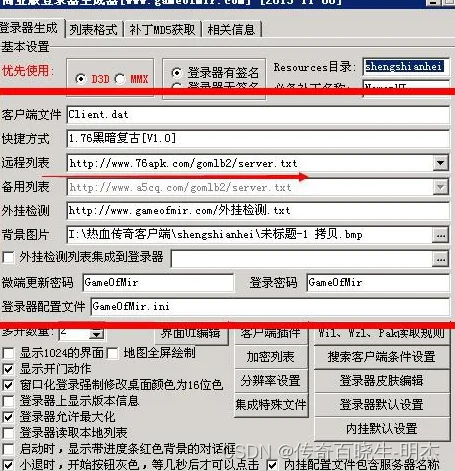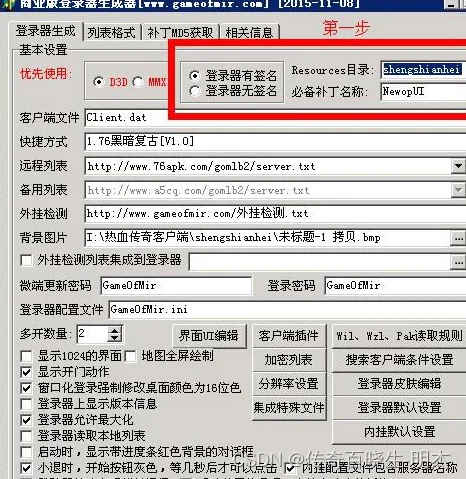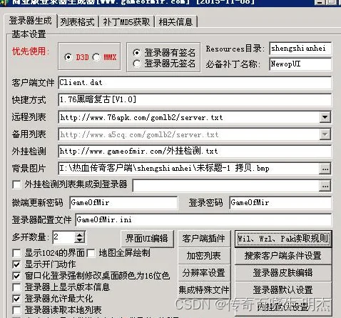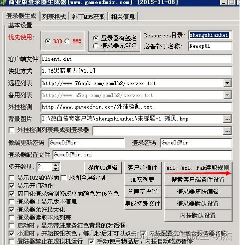 第六步:我们关闭刚刚打开的Wil、Wzl、PAK读取规则那,如上图所示,最下面的版本选择那里,一般的版本的登陆器配置器里都自带有默认的设置,你不需要进行设置,按原版本来就可以,如果出错,你可以选择13周年新界面的那个生成登陆器,前提你自己客户端要13周年以上,要不然UI也看不到的。最后点生成登陆器,测试。