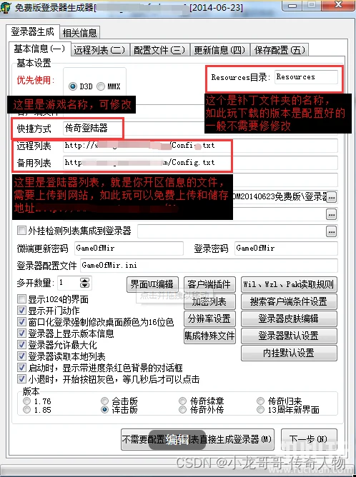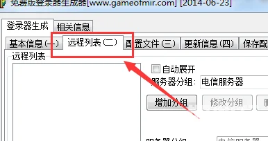 生成列表文件还是在GameOfMir登录器生成器.exe中完成,点击最上面的远程列表按钮。