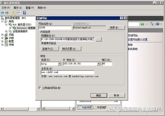 我们怎么搭建这个网站呢,网站名称,这个可以随便填写,没有任何要求应用程序池,点击选择,默认确定物理路径这块,点击图中的两个小点点,里面就是路径选择,我们的版本在那个磁盘里,我们就通过路径找到版本里的网站文件夹类型不变,IP地址填写你的服务器ip,圈起来划重点,最后说一次,没有域名怎么办!主机名,有域名就填,没域名就不用填有一些玩家还是不知道域名是干嘛来的,很多道听途说没用没用或者怎么样,如果你是商业开服,域名是肯定要的,很多老GM都是准备两个域名,至于为什么,之前的文章也详细说明很多次,服务器端口一般都是默认全开特释:80,8080,443这三个端口端口只对备案域名开放如果你没有域名我们可以用ip加端口搭建:如 103.219.30.x:88 ,并不是所有服务器都可以用ip加端口搭建,为什么会有的服务器不支持用ip搭建呢,不同地区的服务器,他们的配置不同,网络环境,网络优化,网络质量,稳定性都不同,有的机房他们的监管力度,管控也很严,也会有防火墙限制,等一些原因会导致你不可以用ip加端口网站搭建好了,我们就开始架设版本1.就是找到D盘的版本 Mirserver,启动网关游戏服务器(版本没问题启动起来的官网是六个以上)2.打开登录器文件夹,配置登录器